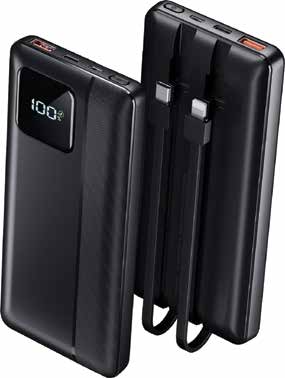 Compact 10,000mAh power bank with LED digital display showing remaining charge. Dual output (USB-A + USB-C) for simultaneous charging. Slim design fits in any pocket or bag. Custom branding on the large flat surface.