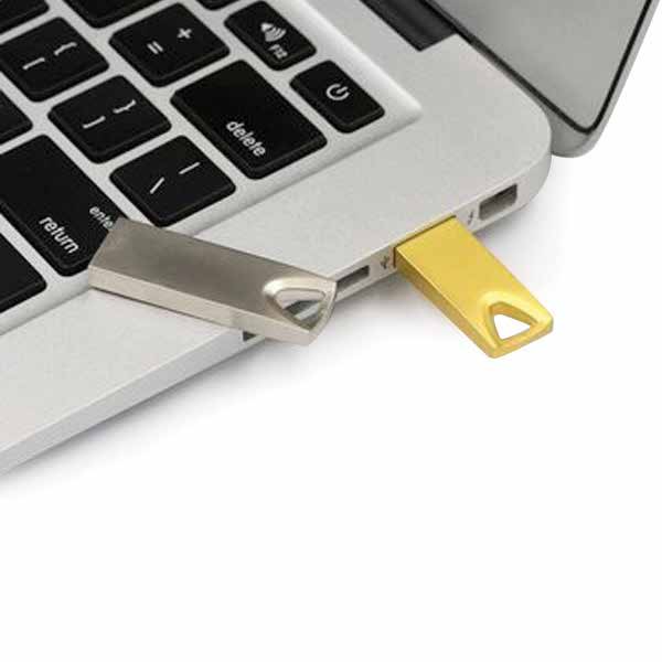 Slim metal USB flash drive with swivel mechanism and lanyard loop. Available in brushed silver and gold finishes. Compact enough for a keyring. Reliable storage for corporate data sharing, conferences, and onboarding kits.