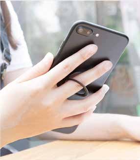 Slim adhesive phone ring holder that doubles as a kickstand. 360° rotation and 180° fold for any viewing angle. Large flat area for full-colour logo printing. One of the most used daily promotional items.